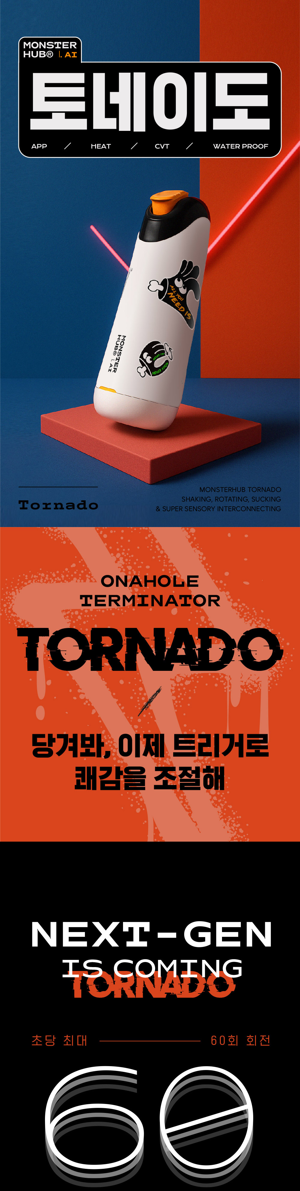 나선형 텍스처로 자채로운 조임을 느낄수 있는 온라인 감각공유 토이 몬스터펍 토네이도