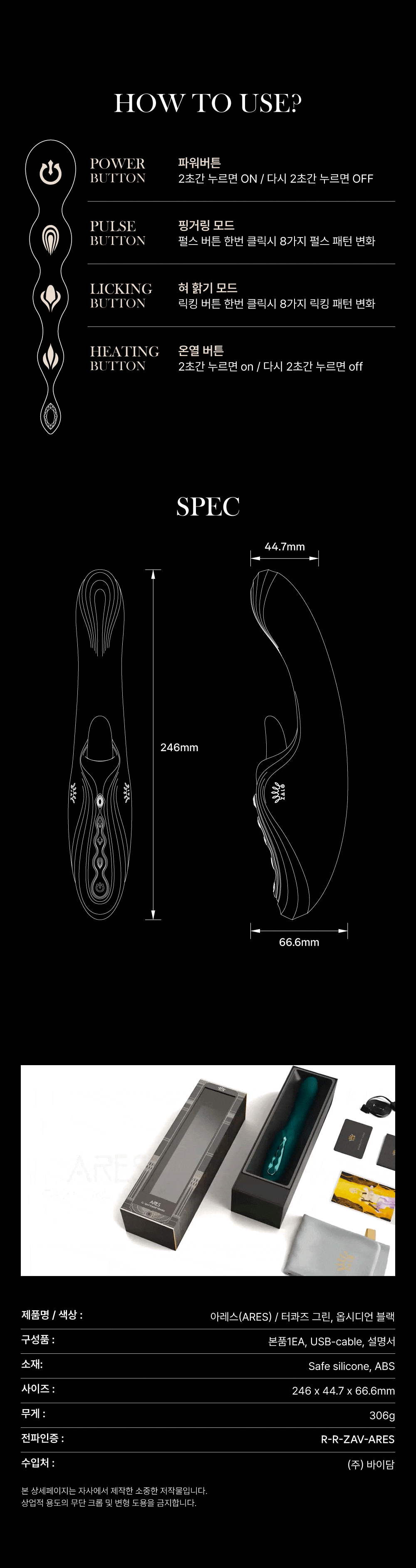 핑거링, 릭킹 듀얼기능으로 더욱 강력한 오르가즘을 선사할, 잘로 아레스